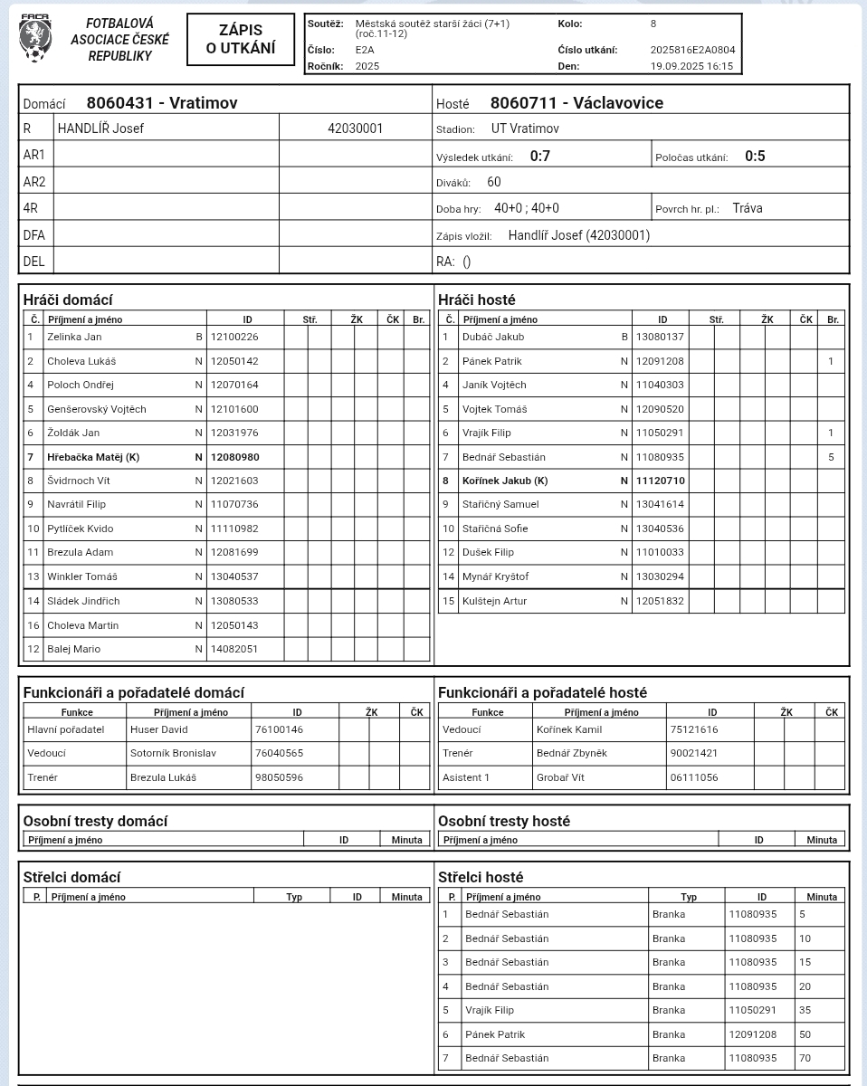 Vratimov U15 - Václavovice U15 0:7 (0:5)