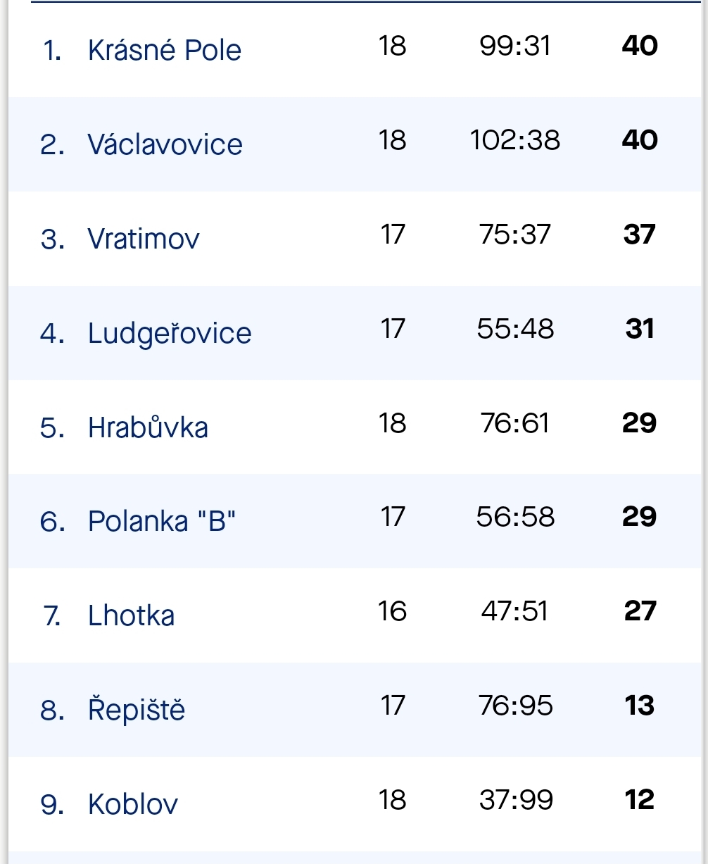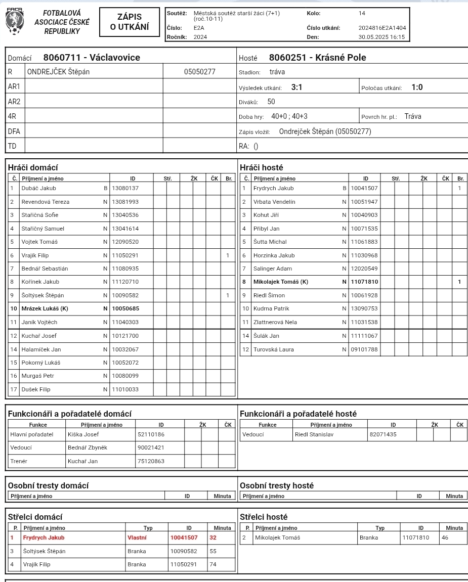 Václavovice U15 - Krásné Pole U15 3:1 (1:0)