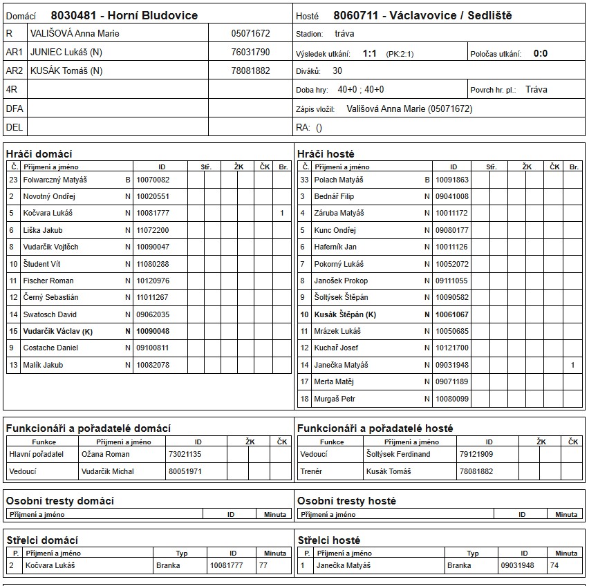 Horní Bludovice U17 - Václavovice/Sedliště U17 1:1 (0:0) PK: 2:1