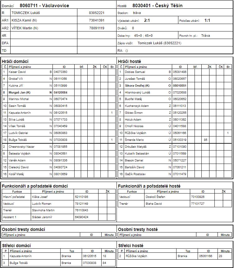 Václavovice - Český Těšín 2:1 (1:1)