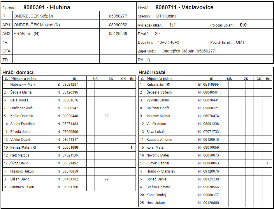 Hlubina (KP) - Václavovice 1:1 (0:0)