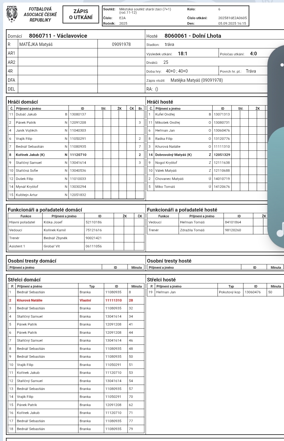 Václavovice U15 - Dolní Lhota U15 18:1 (4:0)