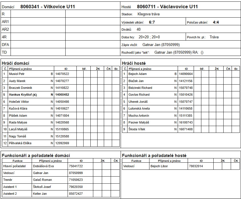 Vítkovice U11 - Václavovice U11 6:7 (4:4)