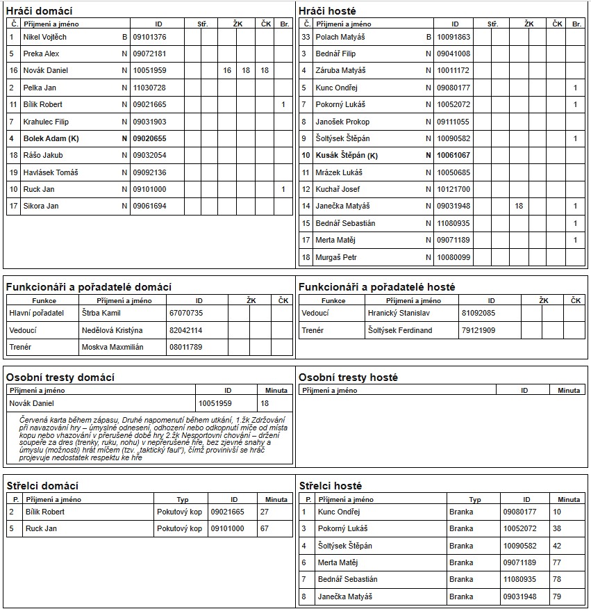 Slovan Ostrava U17 - Václavovice U17 2:6 (1:2)