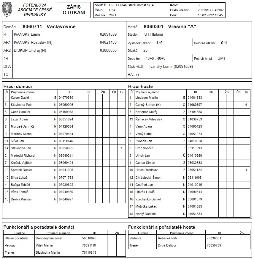 Václavovice - Vřesina "A" (KP) 1:2 (0:1)