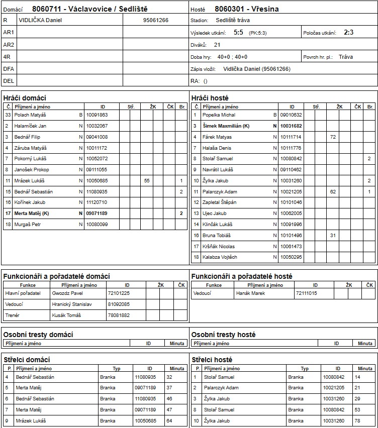 Václavovice/Sedliště U17 - Vřesina U17 6:5 (2:3) PK: 5:3