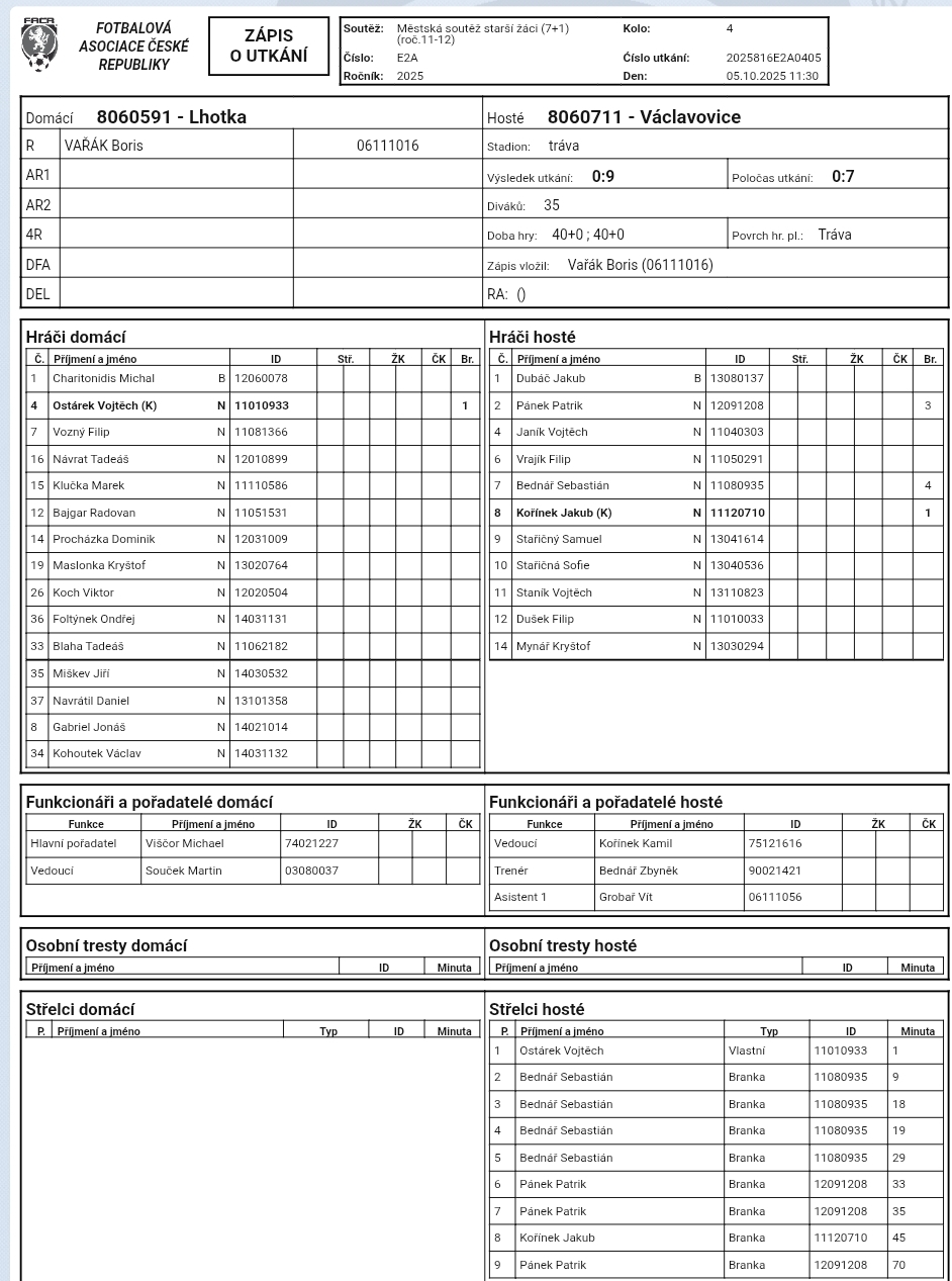 Lhotka U15 - Václavovice U15 0:9 (0:7)